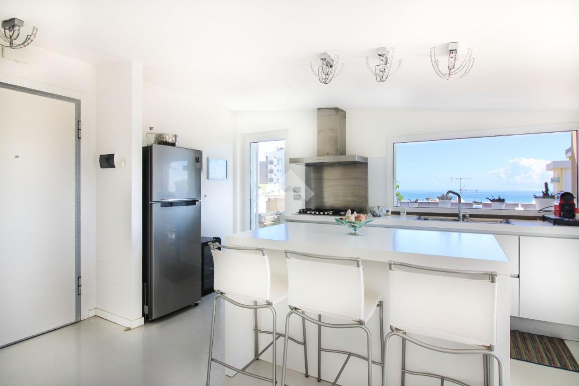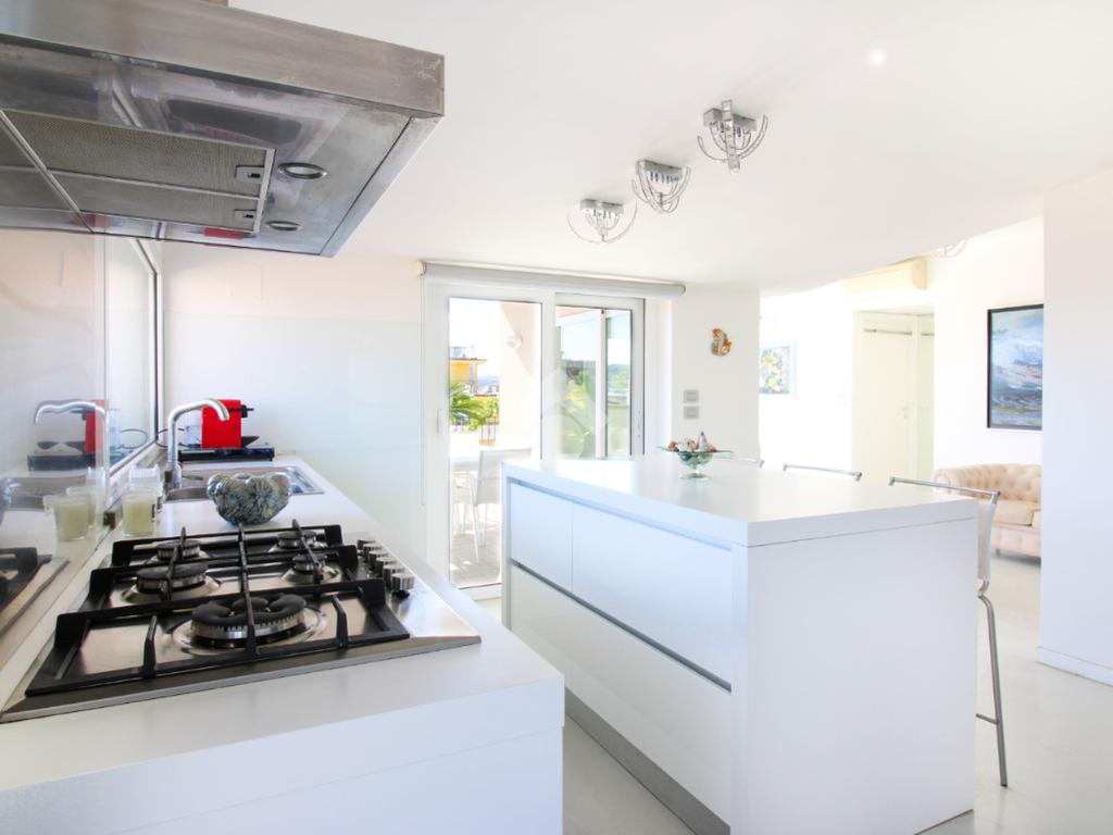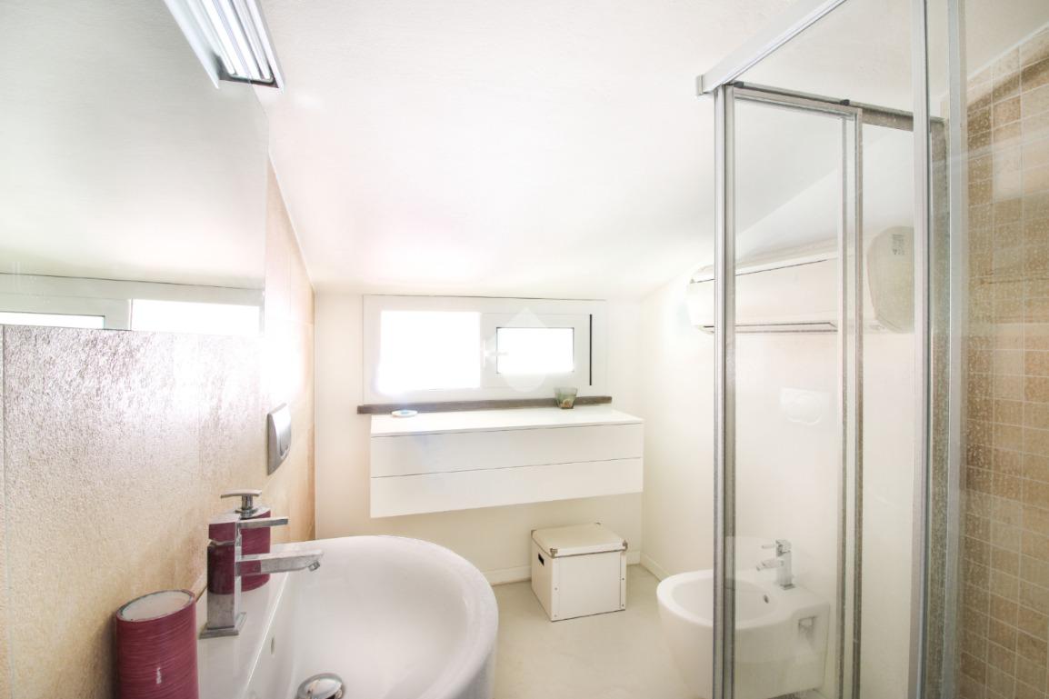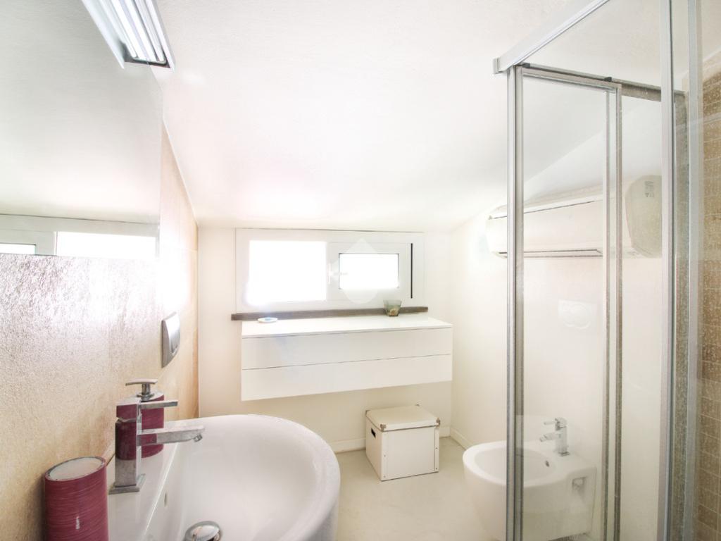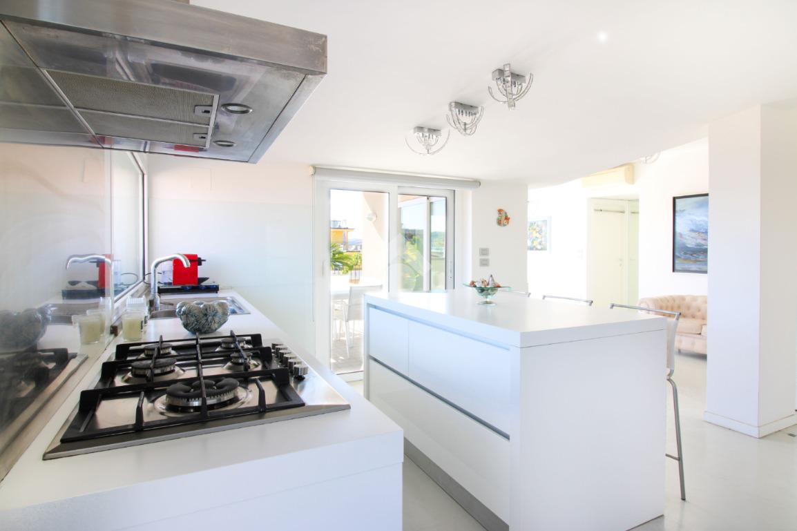La soluzione è così composta: ingresso su luminoso ed ampio soggiorno con cucina abitabile e accesso al terrazzo perimetrale vivibile dove è presente anche una comoda doccia esterna ; La zona notte è composta da due camere matrimoniali anch’esse con uscita sul terrazzo e doppi servizi finestrati con box doccia, di cui uno in camera.