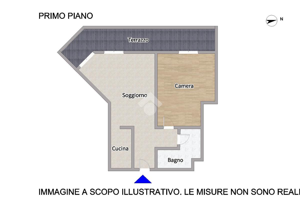La soluzione è così composta: ingresso su soggiorno con cucina separata con accesso al terrazzo abitabile; camera da letto matrimoniale con affaccio sullo stesso terrazzo e bagno con box doccia.