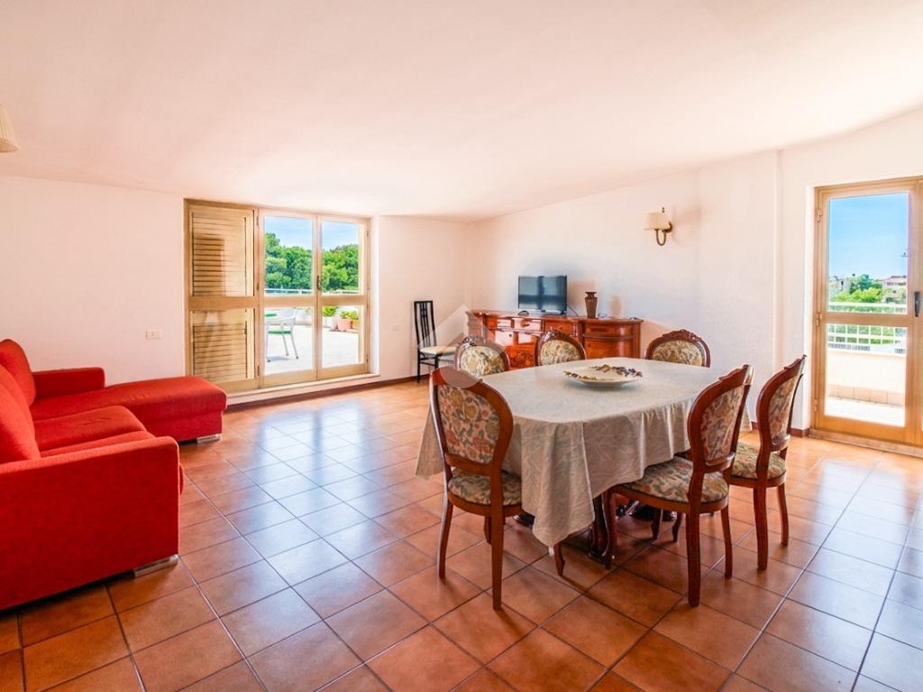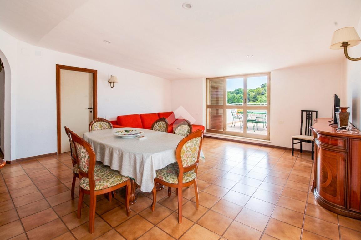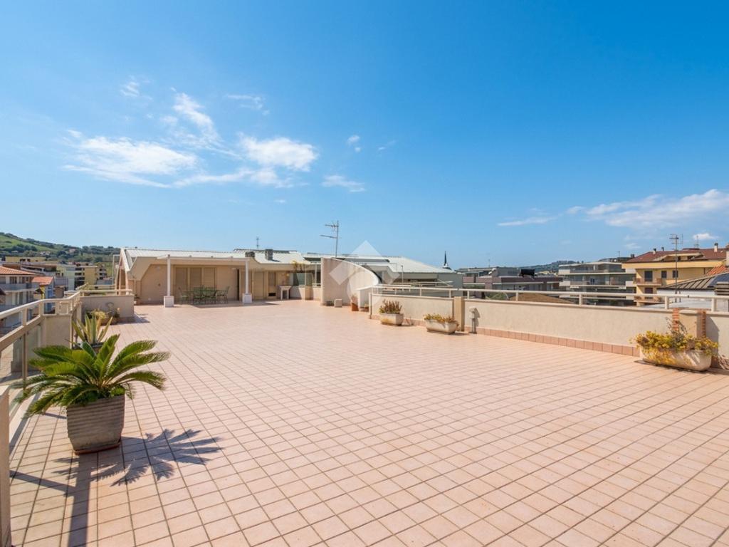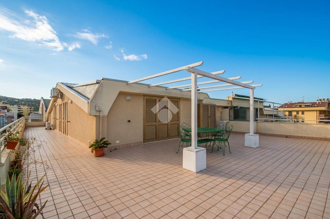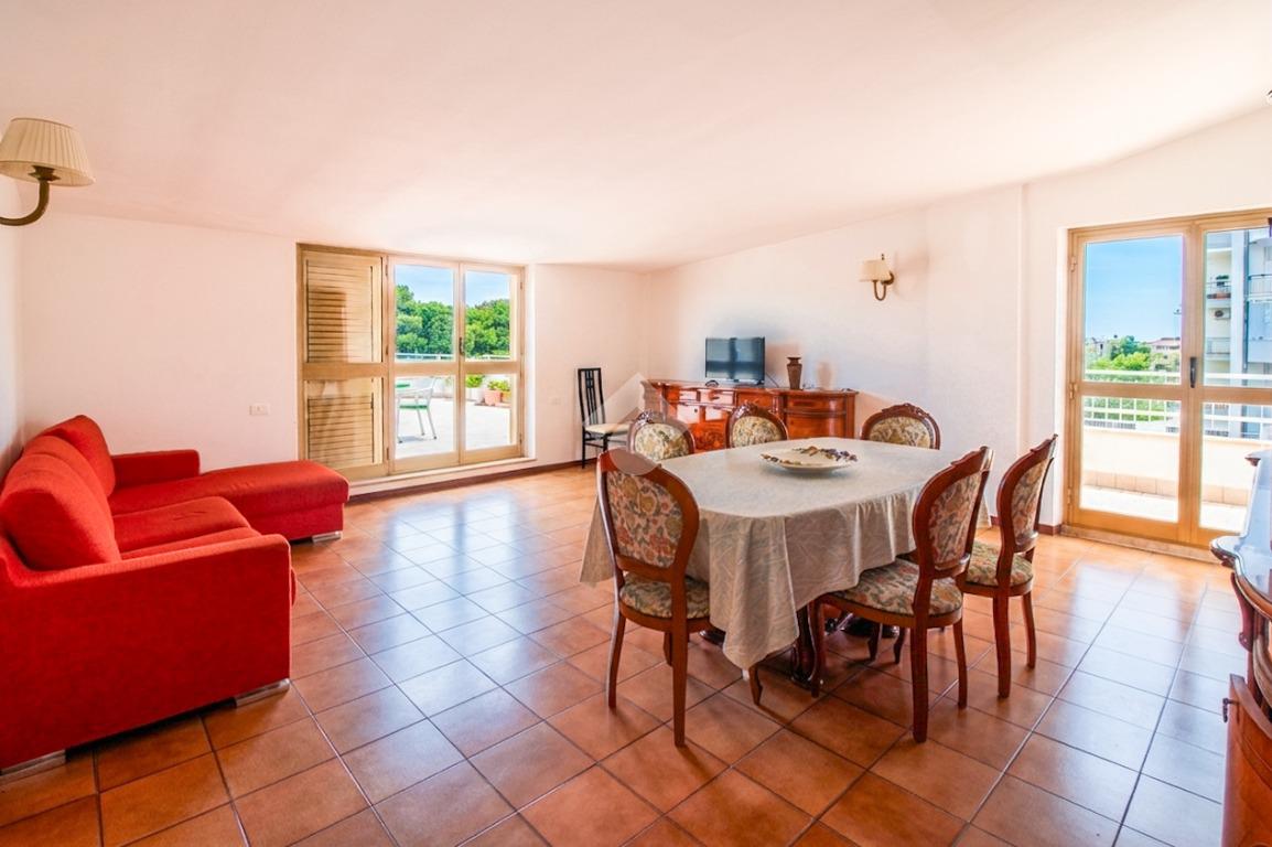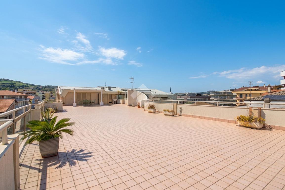 La soluzione è così composta: ingresso su soggiorno con cucina separata e accesso al terrazzo abitabile con vista mare; dal disimpegno si accede alla zona notte composta da tre camere da letto e due bagni finestrati con box doccia, di cui uno in camera.